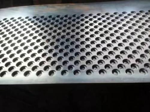 布袋除塵器花板沖壓采用專用沖壓模具冷壓加工,一次成型,花板孔光滑無毛刺,花板表面變形小,平面度偏差不大于1/1000,花板孔中心偏差<1.5mm,孔徑偏差≤0.05mm,袋式除塵器花板厚度一般為6—10mm,在每一塊花板上需沖不同規(guī)格的孔。按設(shè)計要求,這些孔要有良好的通用性和互換性。